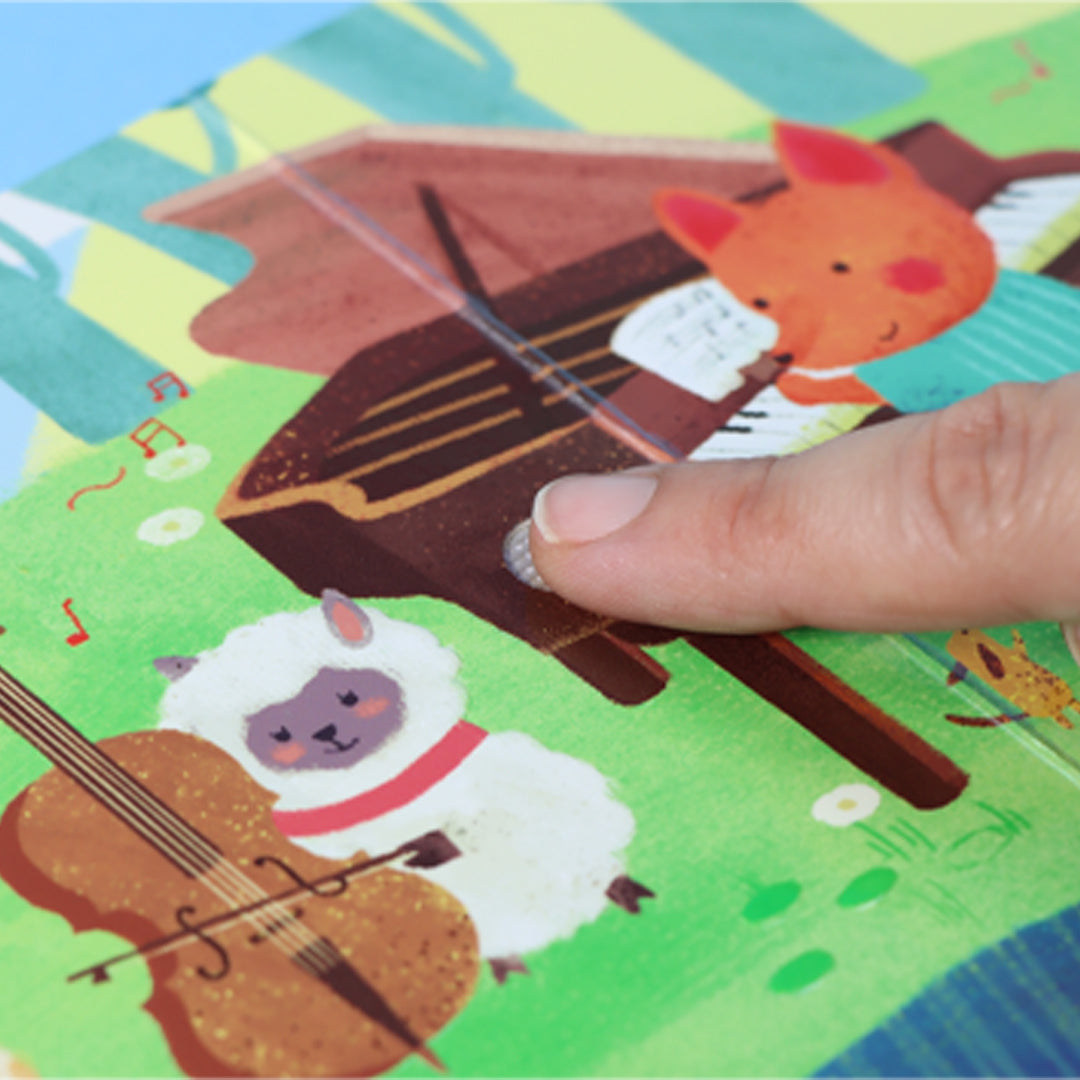 اصطحب طفلك برحلة للتعرف ببعض حيوانات الغابة وأصواتها، من خلال الضغط على الدوائر الصوتية.
