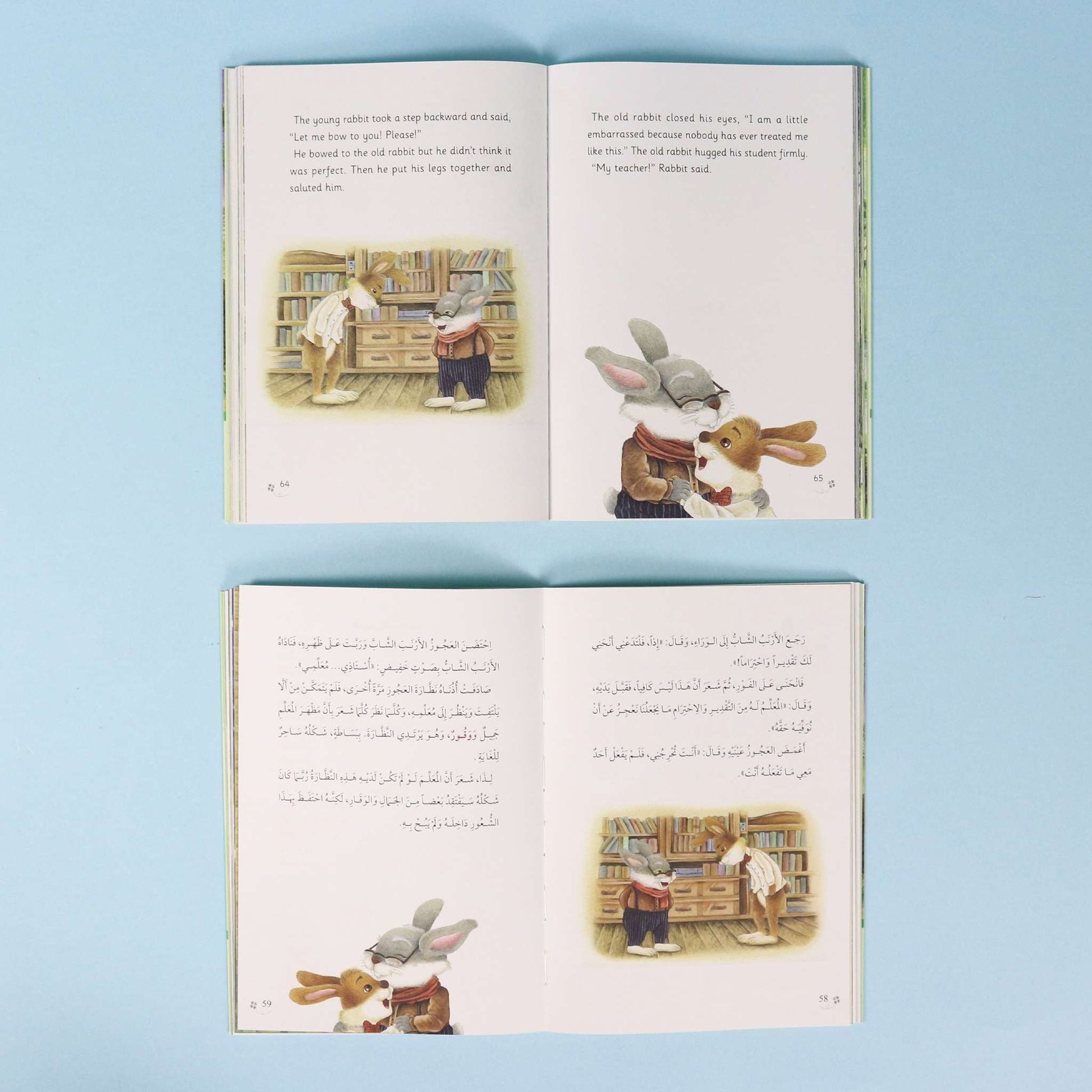 في مكان بعيد داخل الغابة، يوجد بيت خشبي صغير. يحتوي هذا البيت على جميع أنواع الكتب النادرة القيّمة. أمّا صاحب هذا البيت الخشبي الصغير، فهو أرنب عجوز يُعدّ من الكتّاب العظماء النادرين في الغابة. وكان هناك أرنب شابّ يعتريه فضول كبير تُجاه هذا البيت الخشبي، ويريد أن يطّلع على الكتب الموجودة داخل هذا البيت، فوعده الأرنب العجوز بأن يعطيه كتاباً ليقرأه مقابل خمس حبّات من الفطر، فكان الأرنب الشابّ يتلذّذ دائماً بأن يُهدي الأرنب العجوز الفطر يوماً بعد يوم، فاتّخذه الكاتب العظيم تلميذاً، وأعطاه ثلاث نصائح نصائح: أن يقرأ الكثير من الكتب، وأن يكوّن العديد من الصّداقات، وأن يشاهد النجوم كثيراً.